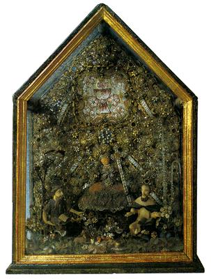 Relikvijar u obliku ustakljene kućice. Unutra voštane figure: malog Isusa kralja s krunom i žezlom, te sv. Pavla Pustinjaka i sv. Antuna.