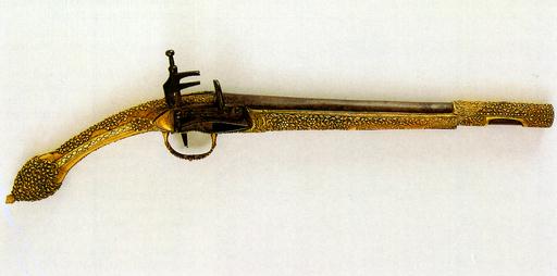 Osmerougaona cijev, prelazi u okruglu, s unutarnje strane glatka. Mehanizam za paljenje tipa 'Miquelet', standardne izrade. Cijeli je pištolj okovan mjedenim pozlaćenim limom, ukrašenim gravurom stiliziranih vitica.