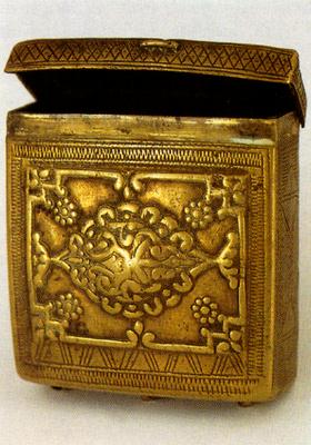 kutija: v. 8,2 cm, š. 8,5 cm, dub. 3,3 cm