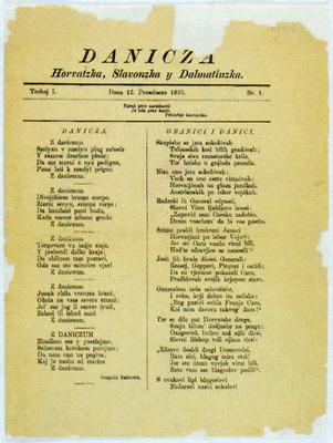 The first number of 'Danica', a weekly supplement to the 'Novine Horvatzke'. The first issue of 'Novine Horvatzke' published by Ljudevit Gaj also marks the beginning of the Croatian National Revival.