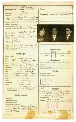 Police file on the arrest of Josip Broz (1892-1980) on May 4th 1928 at the 'Apolo' cinema in Zagreb.