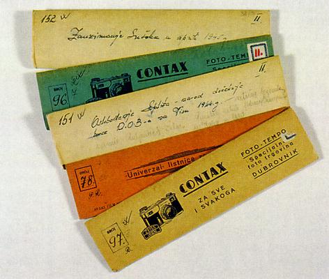 Papirnate uložnice iz razdoblja 1943-1945. godine u koje su se odlagali originalni leica-filmovi snimljeni u Fotoslužbi Propagandnog odjela ZAVNOH-a. Negativi su izrađeni na nitrocelulozi.