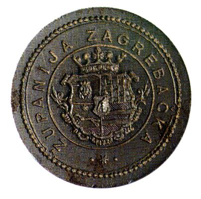 Okrugao; u sredini pečatnog polja grb Zagrebačke Županije (koji je 1759. podijelila Marija Terezija): kvadriran, sa srcem štita u sredini (iz stijene izvire voda u četvrtasti bunar); 1. (u plavom) leopardova glava, 2. šahirano 5x4 (bijelo-crveno); 3. (u plavom, na zelenom tlu) kuna u trku, a iznad nje šestokraka zvijezda; 4. (u zelenom) dvije valovite (srebrne) grede; iznad štita kruna, a uokolo, između dvije ukrasne linije, natpis: ŽUPANIJA ZAGREBAČKA. Držak nedostaje.