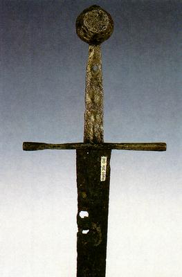 Držak bez obloge završava masivnom okruglom glavicom koja je s obje strane brušena. Križnica ravna, četverobrida, s proširenim krakovima. Sječivo šire, dvobrido sa žlijebom po sredini.
