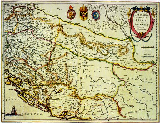 This is the most frequently published map of Croatia during the 17th century. Inaccuracies, which had happened to the great cartographer Mercator, were also regrettably repeated, and they even keep showing up on maps in the 18th century. The author's signature is to be found in the bottom left corner: Per Gerardum Mercatorem/ Cum privilegio.
